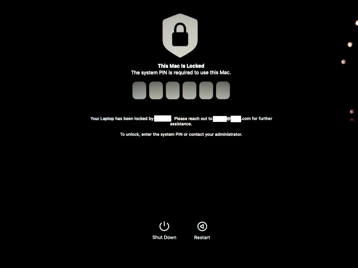 When I power it on, I see a screen “This Mac is locked”. When I press for a power button for 15 seconds, which should give me a recovery screen and choice how to boot, instead there is the same screen “This Mac is locked”.