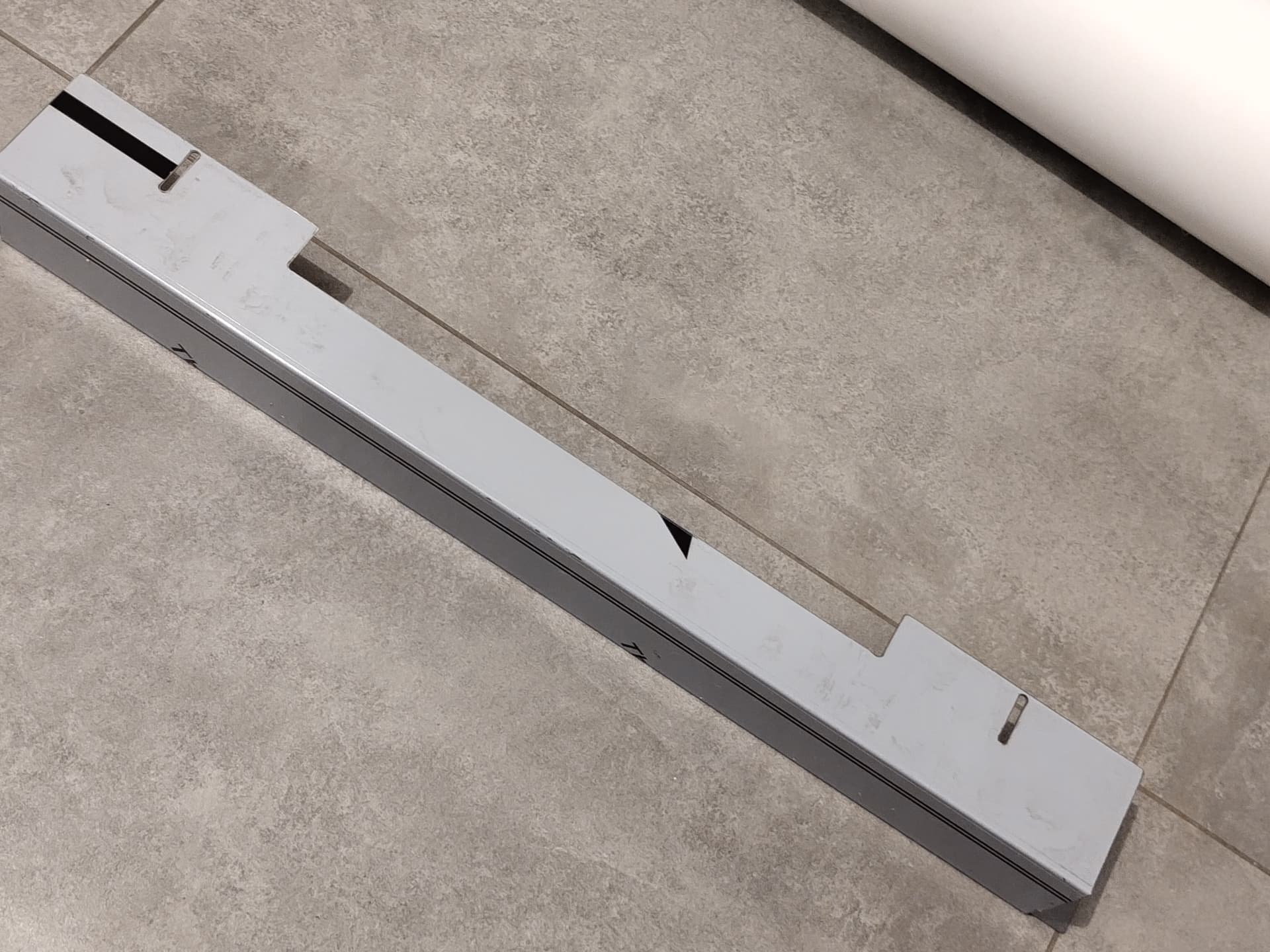 Oddam U-kształtny element z gietej stali. Pochodzi z zestawu okapu kuchennego.
